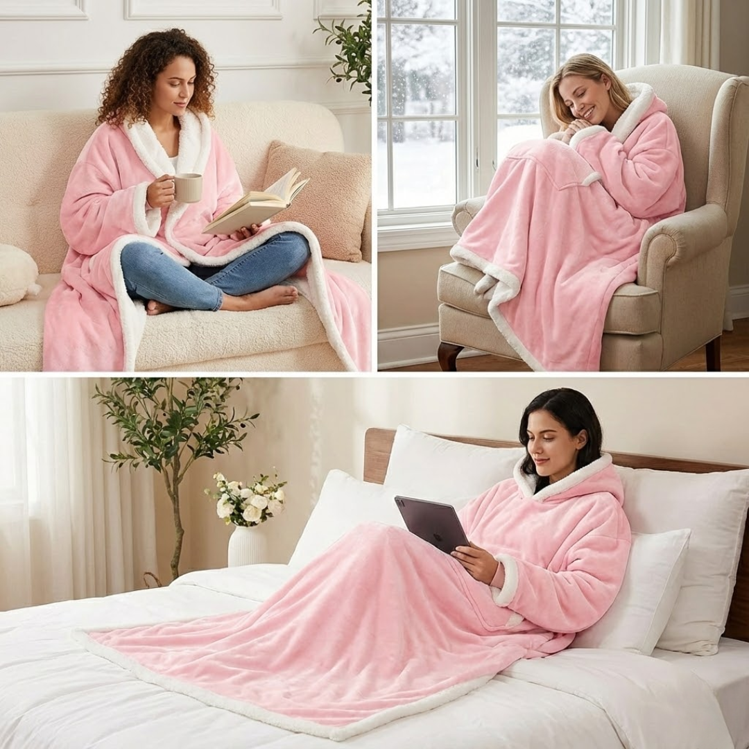 Sleeved, blanket-style design lets you relax, work, or lounge freely while staying warm.